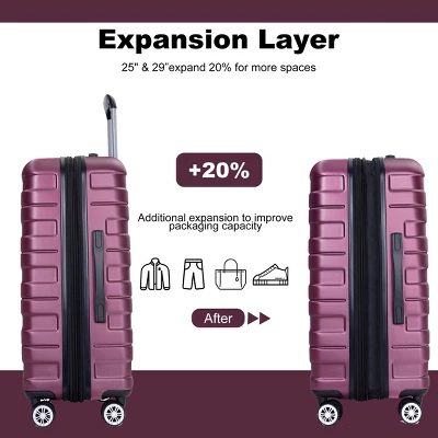 FURNIinspire Bag And Luggage Sets 5 Piece Expandable Hard Shell Suitcase Set Rolling Travel Luggage For Family, Dark Purple, 20.28″*11.42″*30.31″