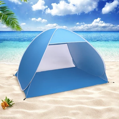 Enjoy effortless shade and comfort with this pop-up beach tent, designed for convenience and sun protection. The automatic setup allows you to unfold it in seconds—no complicated assembly required. Made with high-quality silver-coated fabric, it blocks harmful UV rays while keeping the interior cool. The lightweight design makes it easy to carry, whether you’re heading to the beach, park, or a lakeside picnic. Mesh panels provide ventilation and keep bugs out, ensuring a pleasant experience.