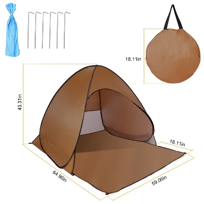 FURNIinspire Camping Tents Pop Up Beach Tent Sun Shade Shelter For Outdoor Beach Camping, Waterproof Tent Canopy, Brown, 64.96″*59.06″*43.3″