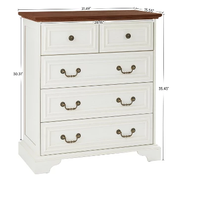 FURNIinspire Dressers 5 Drawers Dresser With Natural Texture, Storage Dressers Organizer For Bedroom, Nursery, Multicolored, 31.5″*15.55″*35.43″