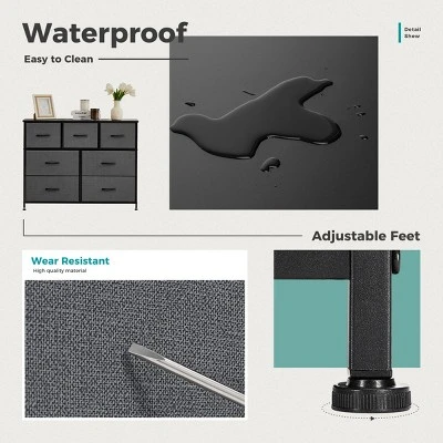 FURNIinspire tall fabric dresser is suitable for any room and lifestyle. It can be used to store sports gear, baby clothes, or linens, while the flat wooden top provides space for keys, lotion, or a nighttime read. A cationic fabric front and breathable non-woven sides create a lightweight, durable storage box that wipes clean in seconds. The simple design coordinates with your other furniture, keeping your living room or bedroom tidy.