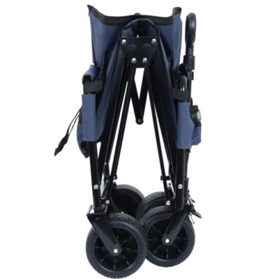 - All-Terrain Wheels: This utility wagon was equipped with all-terrain 6.5″ diameter wheels. The foldable wagon can easily move around on all kinds of roads. Whether you are camping, fishing, shopping or gardening, the 360 ° rotating wheels allow you to adjust the direction as you want.