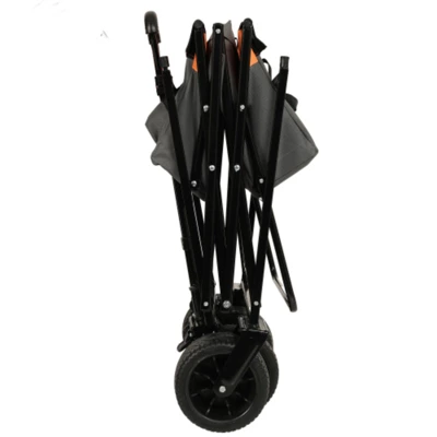 - All-Terrain Wheels: This utility wagon was equipped with all-terrain 6.5″ diameter wheels. The foldable wagon can easily move around on all kinds of roads. Whether you are camping, fishing, shopping or gardening, the 360 ยฐ rotating wheels allow you to adjust the direction as you want.