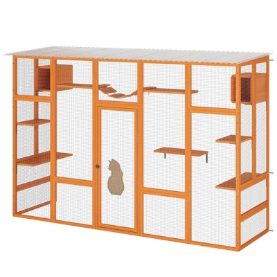 The large cat enclosure is an excellent choice for cat owners who want to provide their feline friends with a comfortable and stimulating living environment. Its size is a major advantage. Constructed mainly from pine, the cat cage is highly durable, promising years of use without worry about wear and tear. The multiple play areas within the enclosure are a highlight. The 6 jumping platforms, 2 condos, and a cat bridge allow cats to satisfy their natural instincts to explore and play.