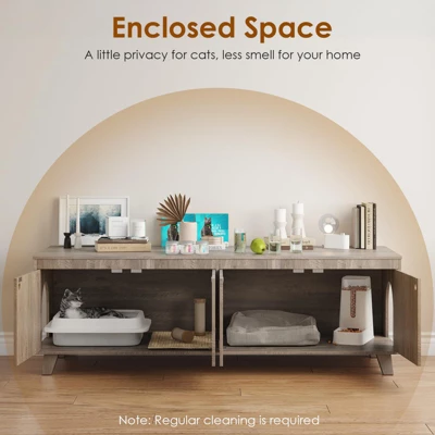 - Enhanced Privacy and Odor Control๏ผThe enclosed design of this hidden cat litter box offers your cat more privacy. It effectively contains stinky smells and prevents cat litter from scattering. Additionally, it can double as a table or stand for household items.