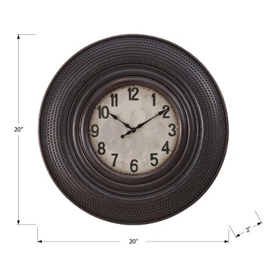 FURNIinspire Wall Clocks 20inch Round Antique Wall Clock Decorative Living Room Hanging Clock Vintage Timepiece Home Decor, Brown, 20″*20″*2″