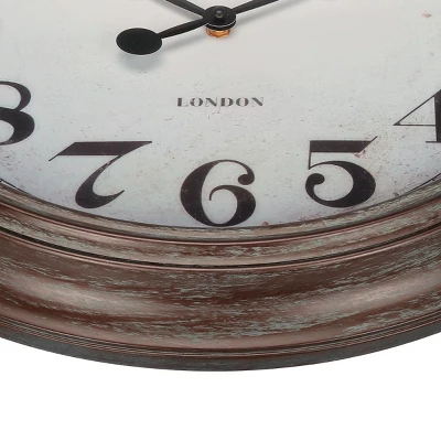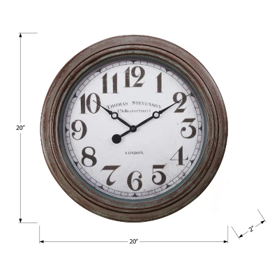 FURNIinspire Wall Clocks Living Room Round Hanging Clock Aged Timepiece Vintage Wall Decor For Bedroom, Office, Brown, 20″*20″*2″