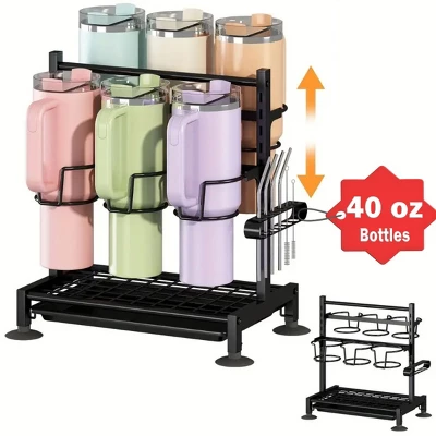 - 6-Slot Adjustable Design for Versatile Capacity: Featuring 6 adjustable slots, the organizer fits a variety of cup sizes—from 40oz tumblers and Stanley cups to thermos mugs and regular coffee cups. The adjustable structure adapts to different cup heights and diameters, letting you customize the layout to avoid overcrowding. It can hold up to six cups at once, making it ideal for families or cup collectors, while the flexible slots eliminate the hassle of mismatched cup-and-rack sizes common with fixed organizers.