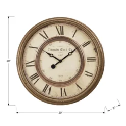FURNIinspire Wall Clocks Round Living Room Roman Numeral Clock Decorative Hanging Clock Vintage Timepiece Home Decor, Brown, 20″*20″*2″